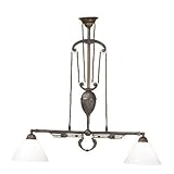Milieu Home Goods Craftsman Two-LightHaving graced the set of ABC's "Desperate Housewives" for the past 3 years, the 602AB is one of our most popular lights. The "Craftsman two light" is perfect for any room of the house. Hang it over the kitchen island or dining room table. This light is designed with an up and down movement of approx. 16" and the shades can be locked to either point up or down. With an oil rubbed aged brass finish, the light looks great with the ribbed brass counter weight, brown cloth covered wire and 8" milk glass shades. Hardwire. Bulb: 60 watts.