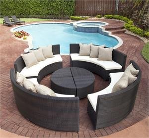 #This is the Hilton Head modern outdoor circle wicker sofa furniture set. This unique modern circle furniture set features four curved sections, so that you can create the seating arrangement for all occasions. The collection features a beautiful wicker.