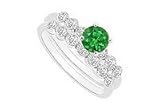 Emerald and Diamond Engagement Ring with Wedding Band Set : 14K White Gold - 0.50 CT TGW Size 15