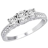 ✚✚✚ 10K White Gold 3 Three Stone Round Brilliant Diamond Ring With Cobra Design Shank (1 cttw, H-I/I1) This dazzling sparkling timeless ring is classic and can be used as an engagement ring, anniversary ring, bridal ring, promise ring, proposal ring, fashion ring, wedding ring, cocktail ring and also to represent eternal love between you and that special s....