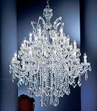 ✚✚✚ Rialto 25-Light Crystal Chandelier (Chrome) Uses twenty-five 40W candelabra bulbs. Pictured in Chrome. Crystal Shown: Crystalique. 38 in. L x 38 in. W x 48 in. H