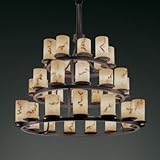 ✚✚✚ Justice Design FAL-8712-12-MBLK Dakota 36-Light 3-Tier Ring Chandelier The LumenAria Collection offers the look of genuine carved alabaster without the cost. These faux alabaster fixtures combine many of your favorite shapes with the warmth and beauty of an alabaster glow. • Supplemental mounting support required independent of j-box • Approximate fixture weight: 200 lbs.