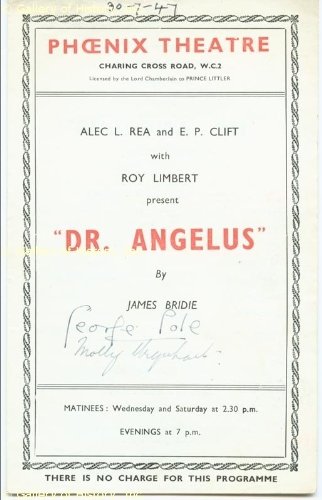 DR. ANGELUS PLAY CAST - SHOW BILL SIGNED CIRCA 1947 CO-SIGNED BY:GEORGE COLE , MOLLY URQUHART