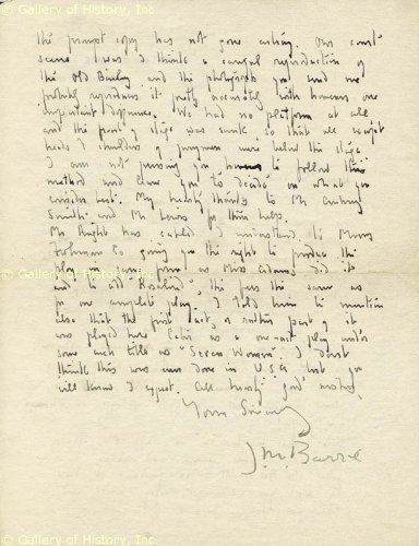 SIR JAMES M. BARRIE - MANUSCRIPT LETTER SIGNED 02/11/1927 ![]()