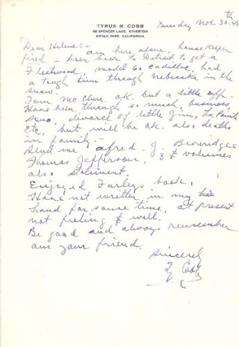 Ty Cobb Autographed Hand Written Letter JSA #X18367 ![]()