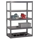✚✚✚ TENNSCO Reinforced Shelving TENNSCO Reinforced Shelving has unique cross beam supports that provide maximum shelf capacity. Braceless design permits access from all sides. Double-rivet shelf connection. Comes complete with (5) shelves that adjust in 11/2" increments. 14-gauge steel posts; 16-gauge steel shelves. Unassembled. Powder-coat finish. Color: gray.